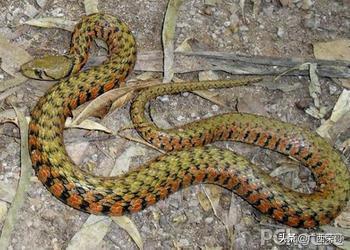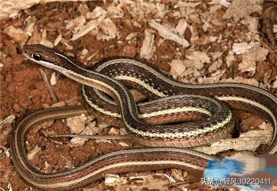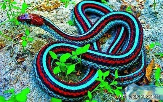 7,袜带蛇颜色靓丽的草蛇袜带蛇或称束带蛇身具条纹图案有如袜带。袜带蛇为加拿大至中美洲一带最常见的蛇类之一。代表种的特征是身上有1或3条纵向黄色或红色条纹,条纹之间夹著方格斑。条纹不明显或无条纹的种类通常称草蛇。