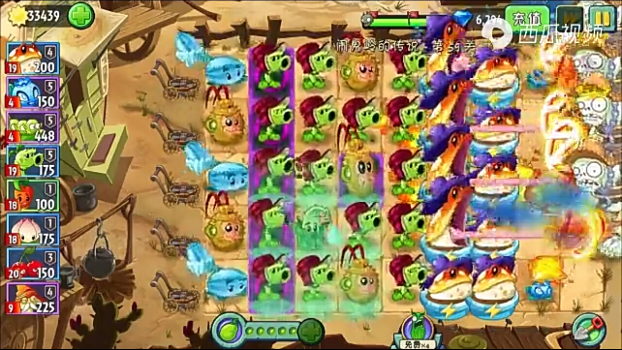 注意:淘金僵尸属于大型僵尸,5阶大嘴花特效吞不掉,我建议将上述平民阵的右一列换为绝版小鬼梨,用来杀小鸡,绝版小鬼梨可在团购中花2680钻购买,按上述排放,起码可以过65关无尽。