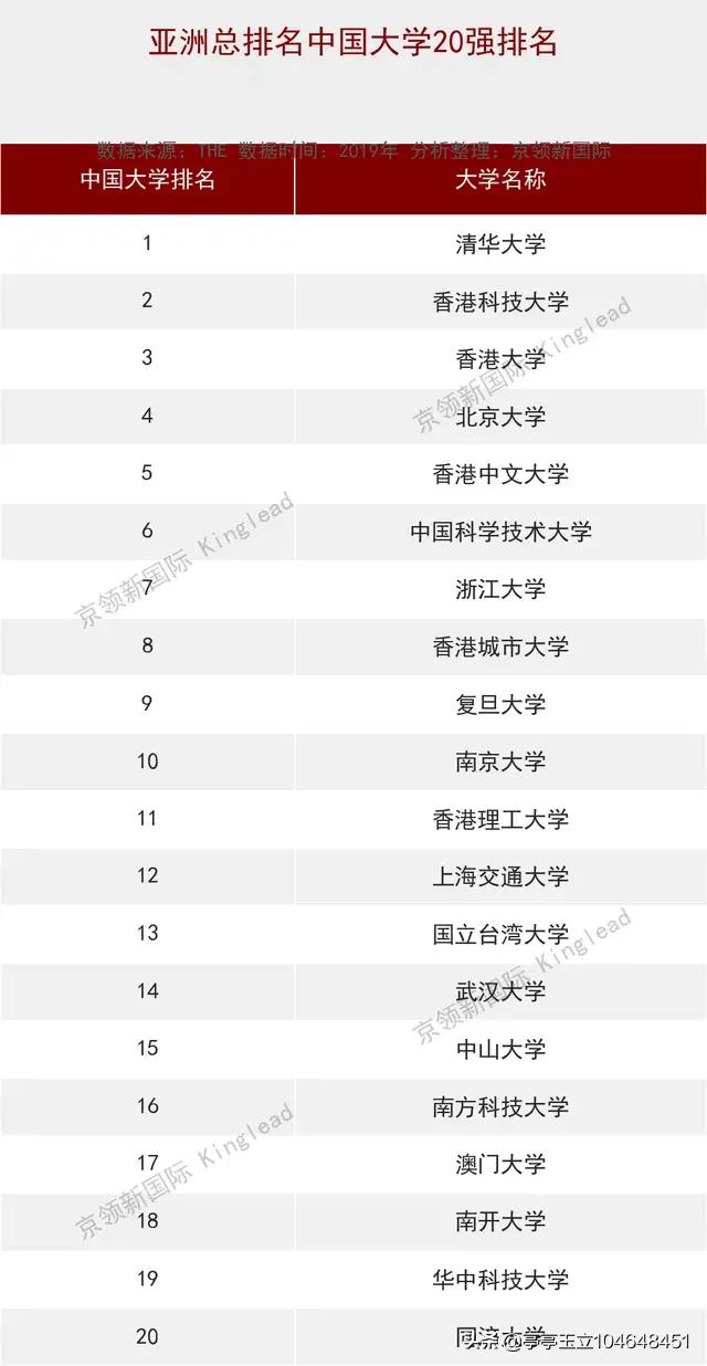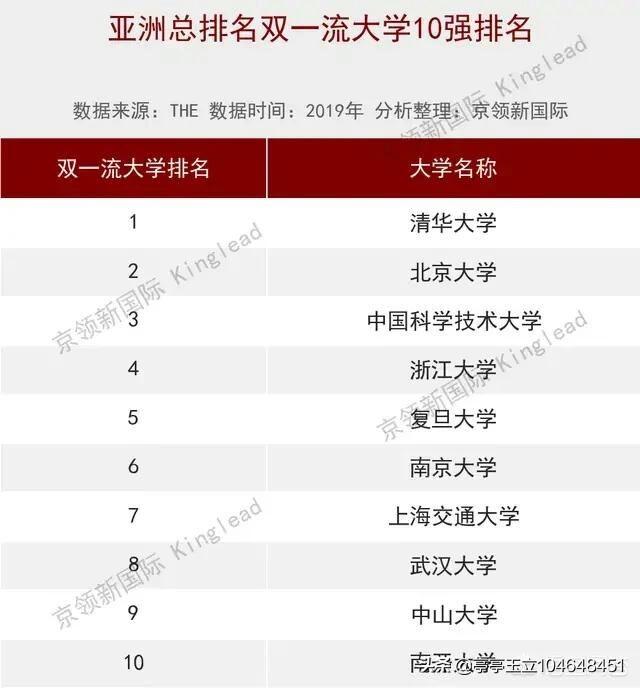 亚洲大学排名中的中国内地十大名校有