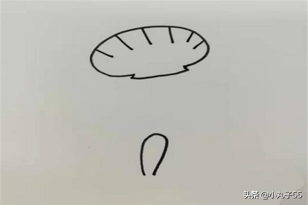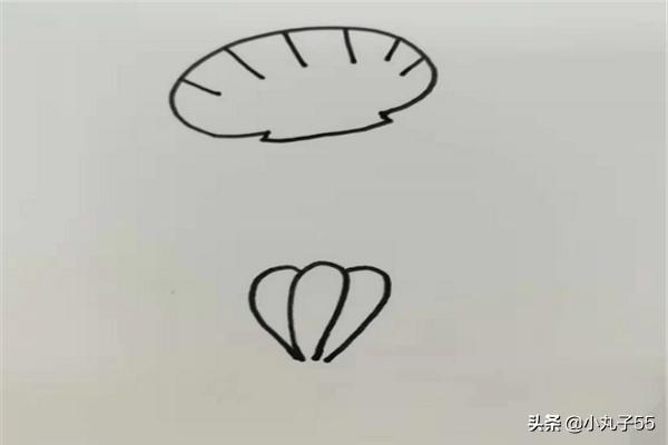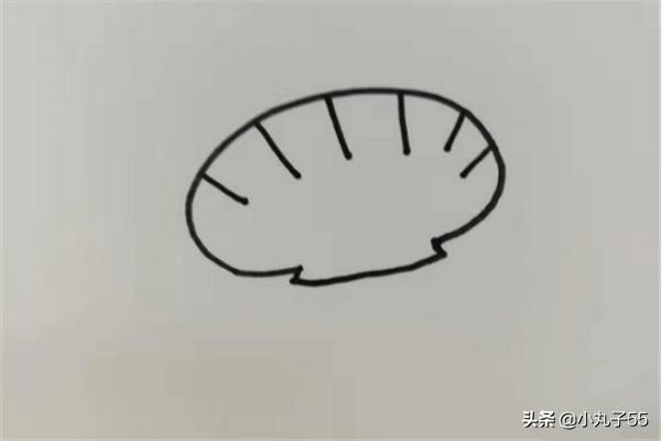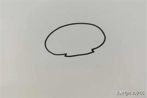 2第二步,在刚刚画好的椭圆的空白的部分,我们画上两条往下的小小的折线,把椭圆连接起来,这样贝壳的大体形状就画好了,具体如下图所示。