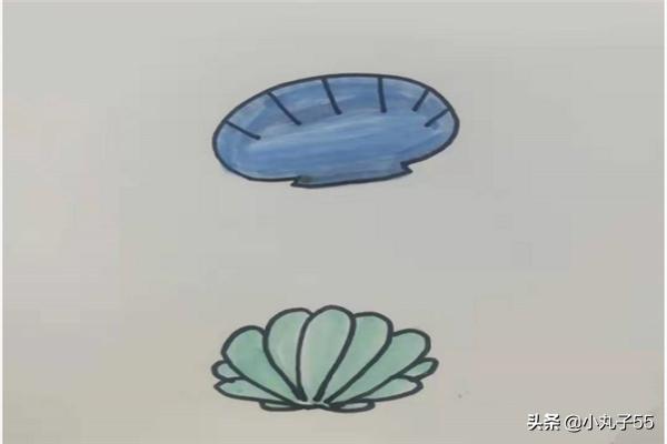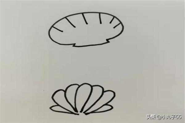 首先我们先画出扇贝的贝壳,用波浪线画出贝壳上的锯齿。