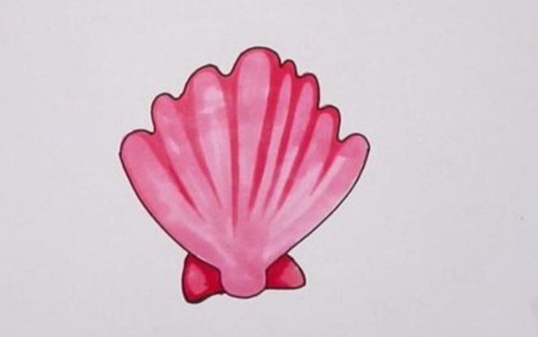 最后用深一点的桃红色画出贝壳的纹路,漂亮的贝壳简笔画就完成啦!