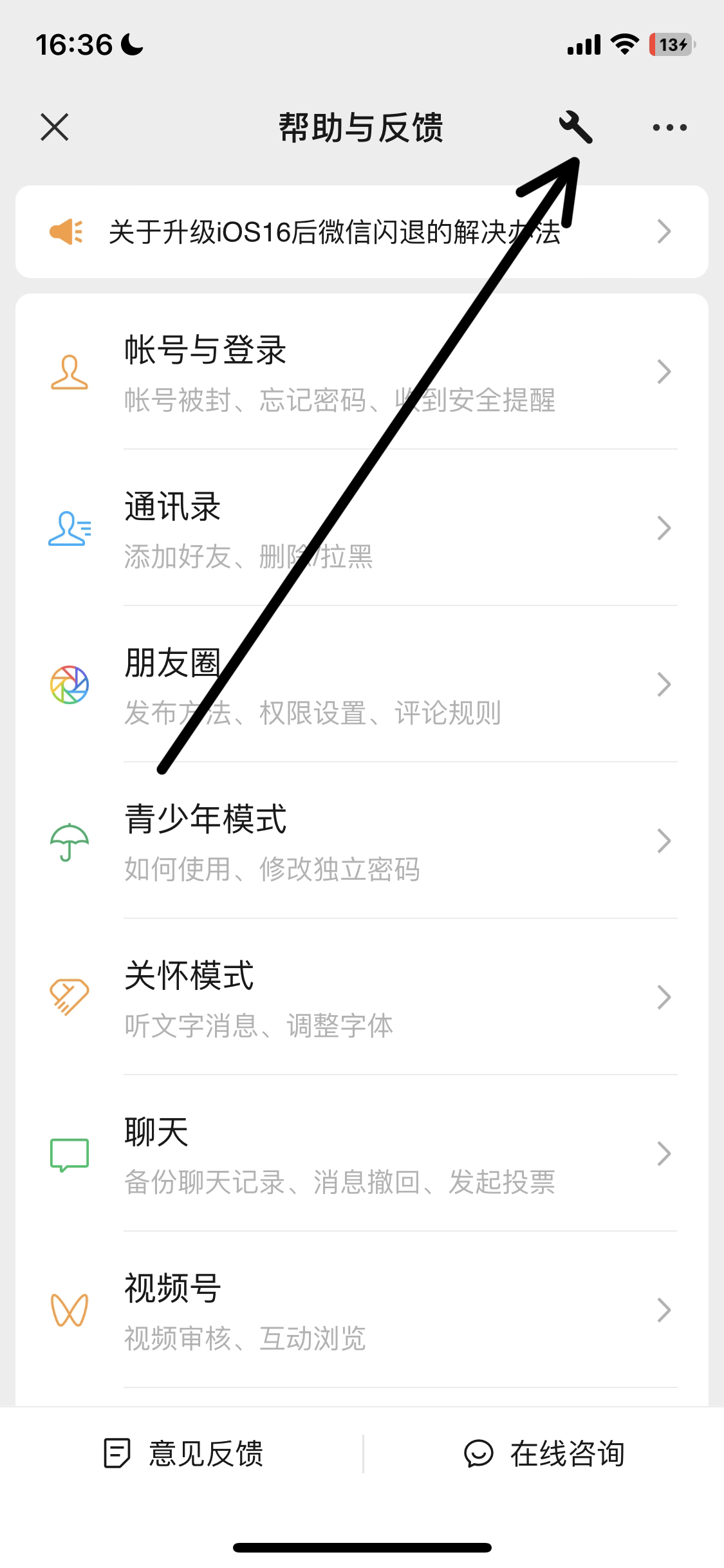 2、点击帮助与反馈。