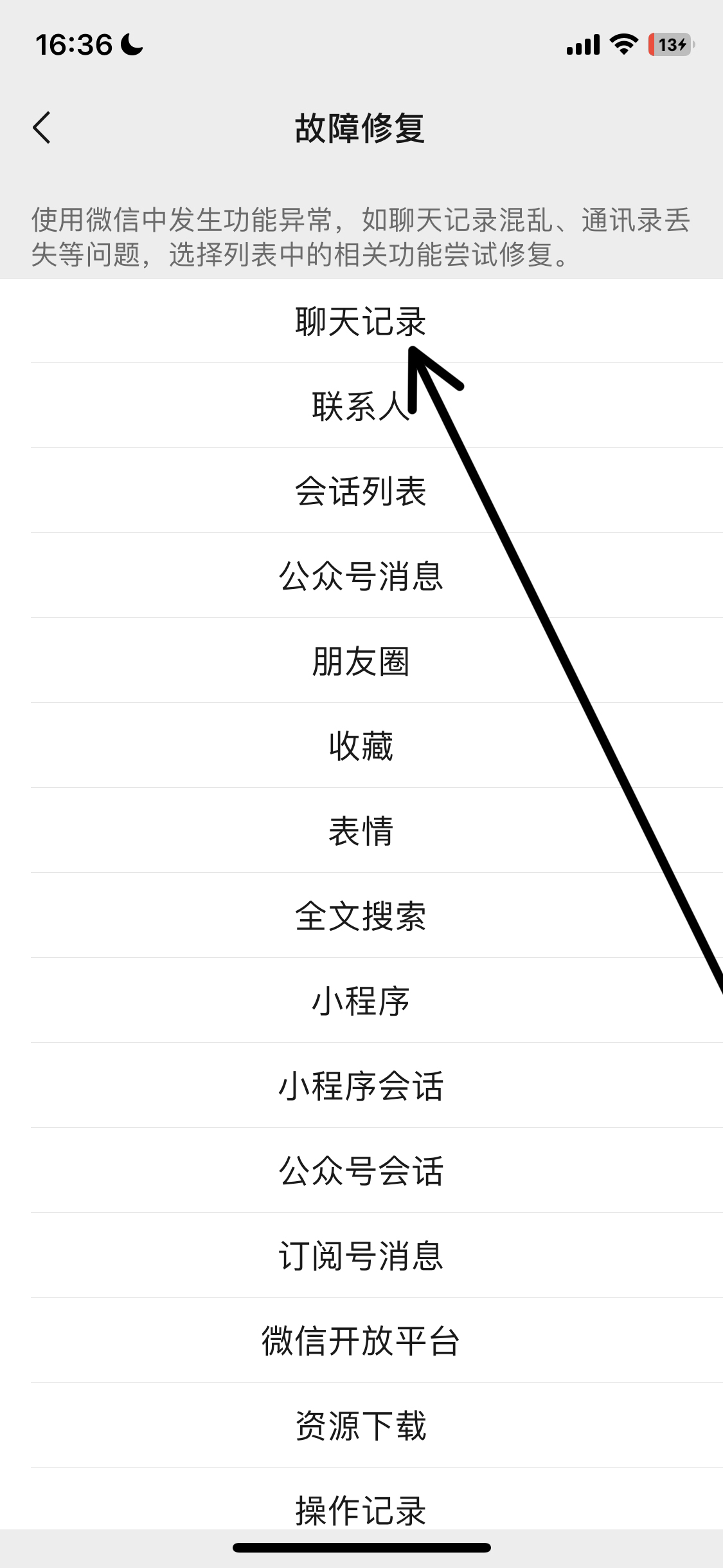 这种并非自己手动删除,而聊天记录不正常显示是属于微信聊天记录故障,恢复方法如下: