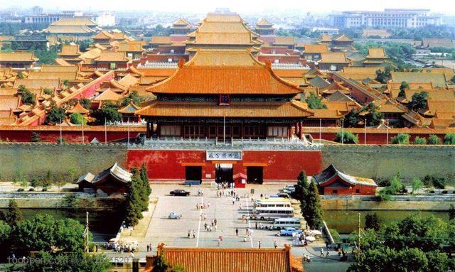 故宫,又称紫禁城,是明、清两代的皇宫,为我国现存最大最完整的古建筑群,无与伦比的古代建筑杰作。紫禁城占地72万多平方米,共有宫殿9000多间,都是木结构、黄琉璃瓦顶、青白石底座,饰以金碧辉煌的彩画。这些宫殿是沿着一条南北向中轴线排列,并向两旁展开,南北取直,左右对称。