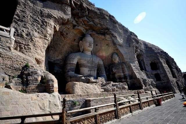 云冈石窟位于大同市区西16公里处的武周山麓。石窟依山开凿,东西绵延1公里。现存洞窟53个,石雕造像5.1万余尊,是国内三大石窟群之一,属国家级重点文物保护单位,并列入由联合国教科文组织世界遗产委员会承办的《世界遗产目录》中。石窟始凿于北魏兴安二年(453),距今已有1500多年的历史。