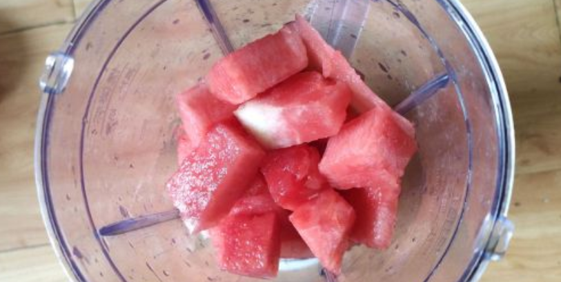 接着再把西瓜150克放入到料理机当中,打三分钟即可。