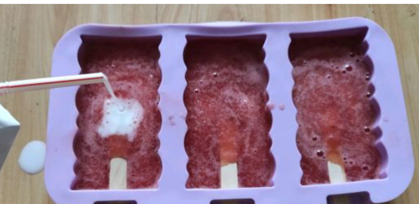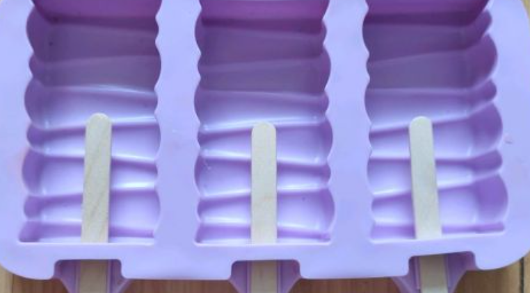 然后再准备雪糕模具,里面放入雪糕棍,直接从下面的孔洞插进去即可。