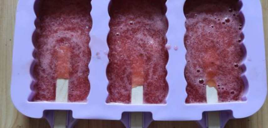 步骤4倒入西瓜汁,至八九分满。置入冰箱冷冻4小时左右。