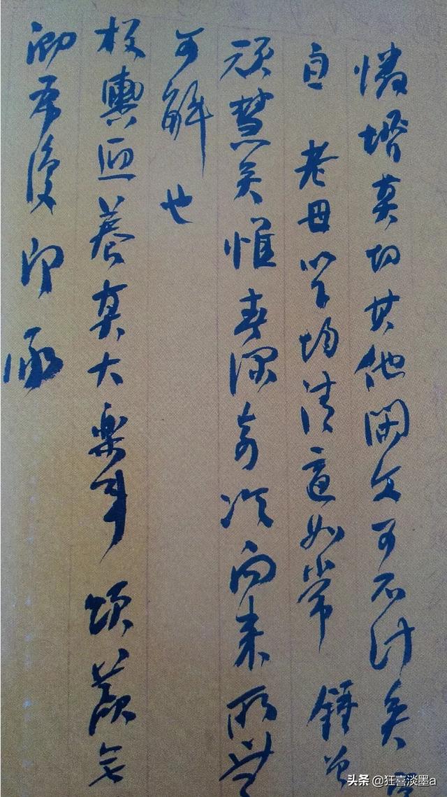 唐经过魏晋,张旭则凸起,成为狂放不羁放纵笔墨气象,后有怀素,把汉字玩味出了线条径过使转,而成心灵的音符。