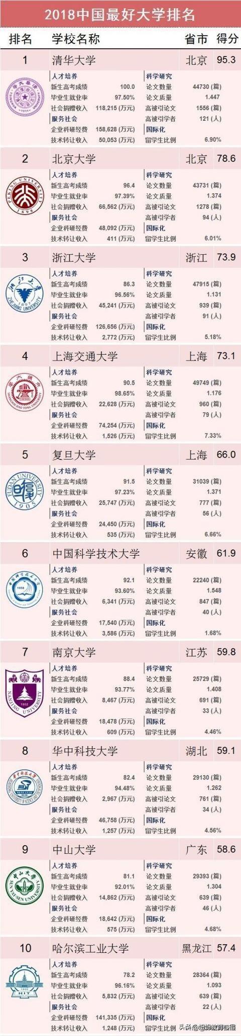 通过以上三个排名可以看出前十名各有不同,不过清华,北大,浙大,复旦,南京,上海交通大学在三个排名中都挤进了前十名,看样子他们在各方面真的很强。