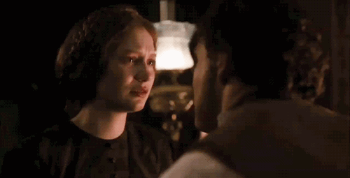 Mia姑娘的Jane一直很没有表情好么?Jane是看起来有点孤独的那种女孩子,但也不是没有表情的面瘫姑娘啊。唯一展现出表情的一段就是Jane知道Rochester有个老婆后的痛苦表情。一直没有表情的Jane到底怎么才能让罗切斯特先生觉得她是“孩子气的小巧家伙!仿佛一只红雀跳到我脚跟前”。没有生气没有愤怒没有欢乐没有悲伤,Mia的脸上只有一种表情,那就是没有表情(她一直都是这样的→=_=)